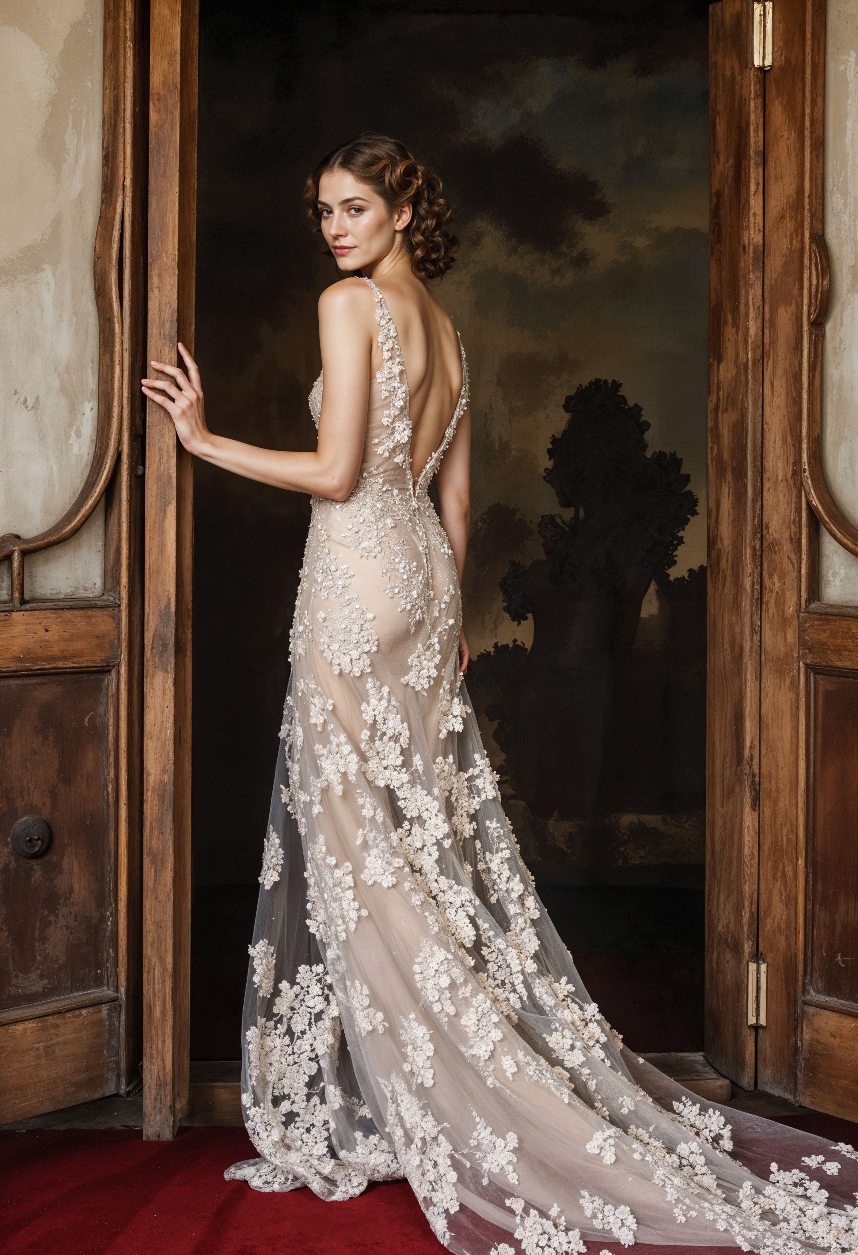 #7945 STRAPLESS FLORAL FRENCH EVENING DRESS