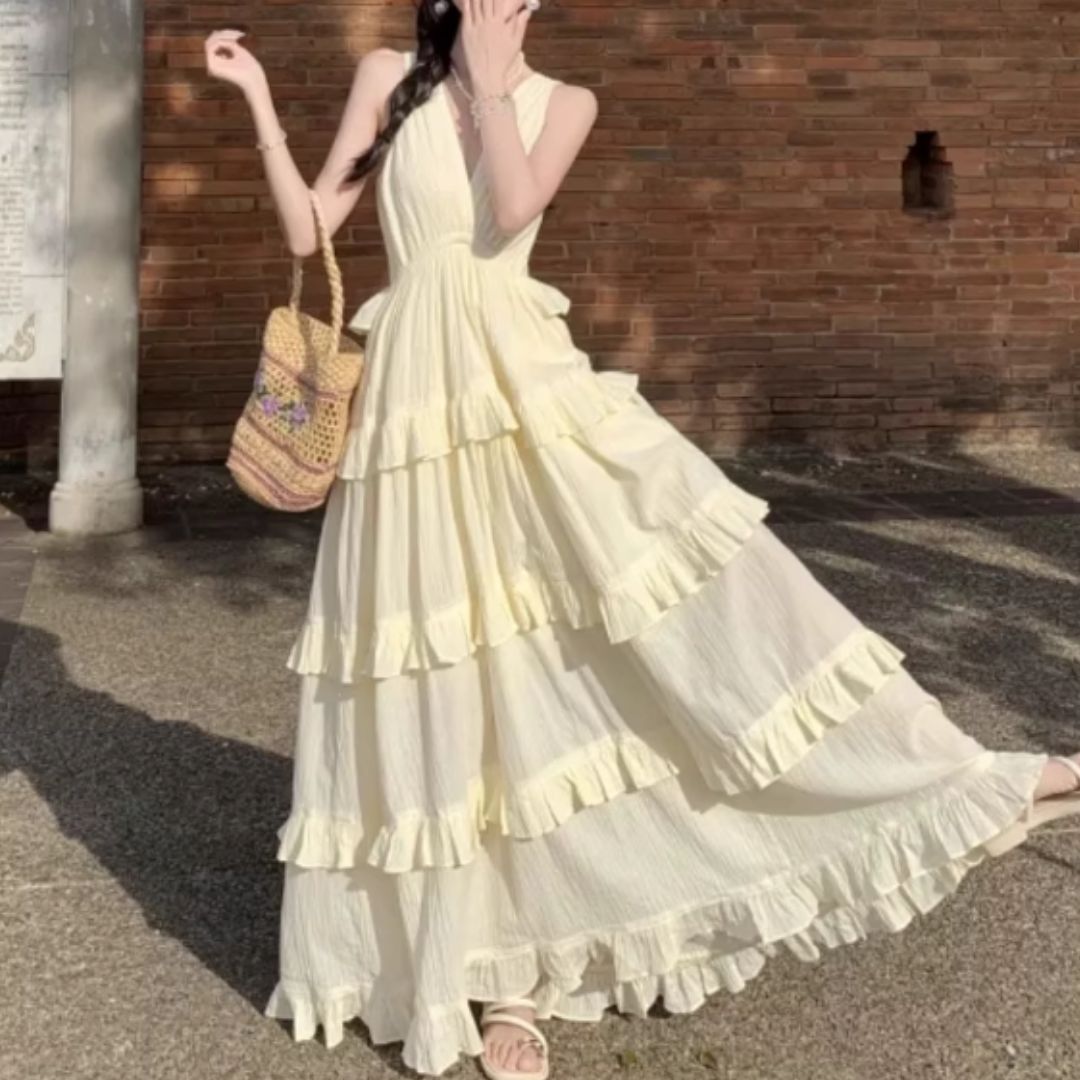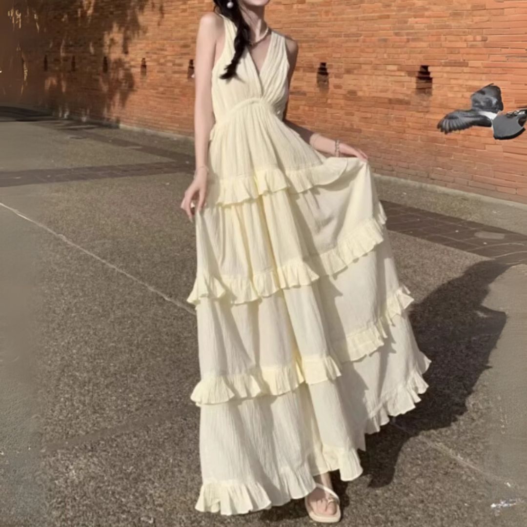 This beautiful V-Neck A-Line Dress is perfect for your vacation or any casual occasion. The elegant design features flattering ruffles and pleats, adding a playful touch to the classic silhouette. Made from comfortable polyester, this sleeveless dress is lightweight and easy to wear, making it a versatile addition to your wardrobe. Whether you're enjoying a day out or attending a special event, this dress will make you feel chic and confident!