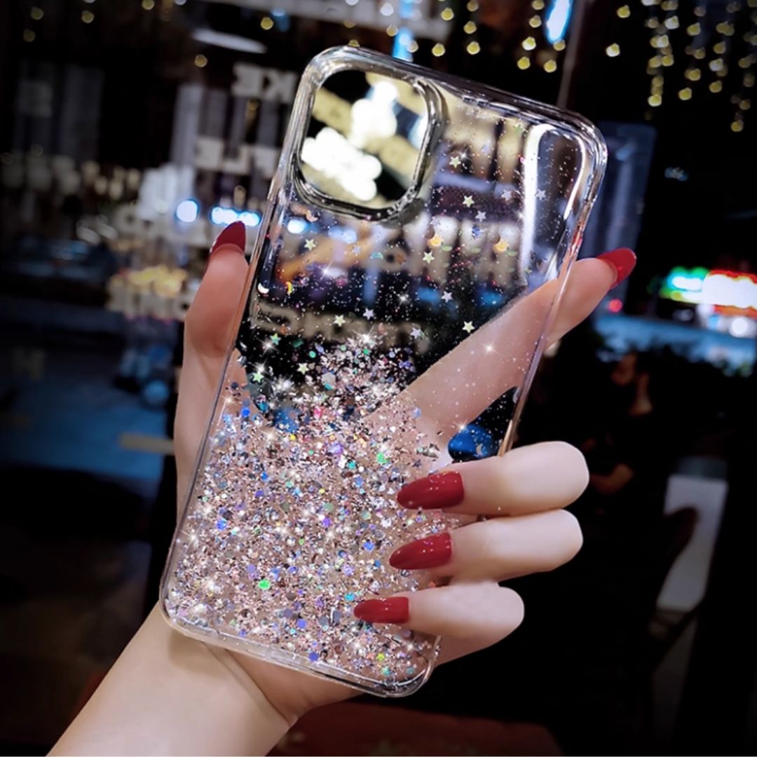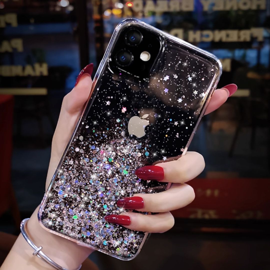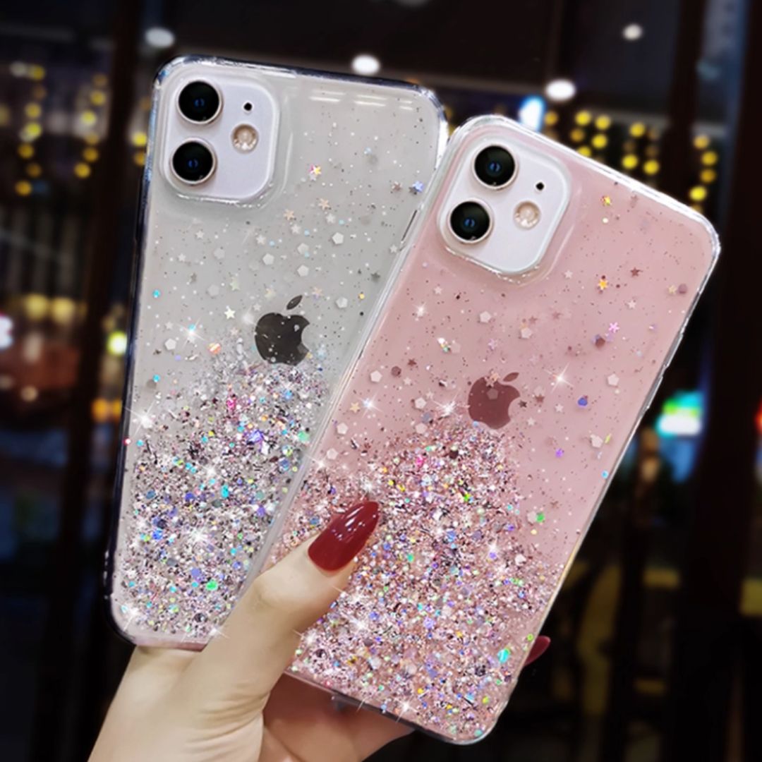 This stunning Luxury Glitter Phone Case is the perfect blend of style and protection. With its eye-catching starry glitter design and soft gel texture, this case not only safeguards your device but also adds a touch of luxury to your everyday look. Available in transparent white and transparent pink, it complements your iPhone while providing essential shock protection. Ideal for fashion-forward individuals, this case will make your phone stand out and keep it safe from everyday wear and tear!