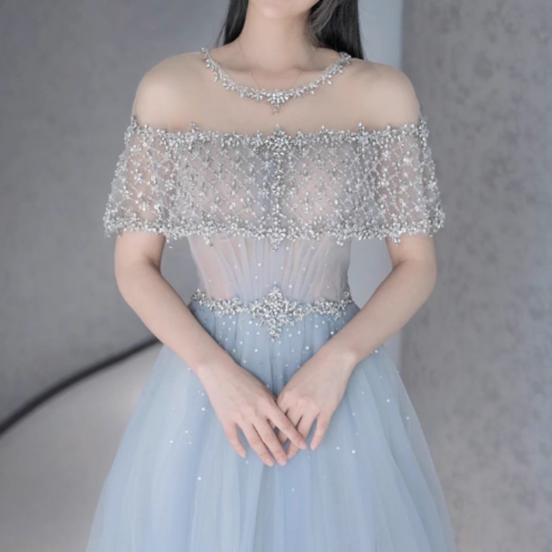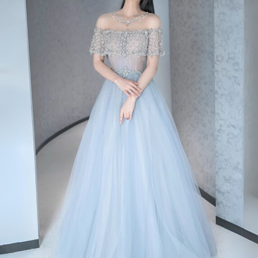 Introducing the enchanting A-Line Evening Gown by Dressesloves. This stunning dress features a delicate off-the-shoulder design adorned with intricate embellishments, perfect for creating a dreamy and elegant look. The graceful A-line silhouette flatters all body types, making it suitable for a range of occasions including weddings, formal events, and special celebrations. Crafted from lightweight polyester, this gown is not only beautiful but also comfortable to wear. Whether you're dancing the night away or attending a glamorous gathering, this dress will make you feel like the belle of the ball!