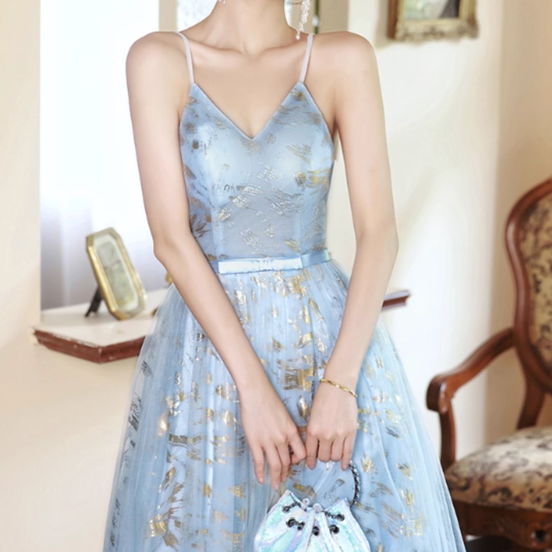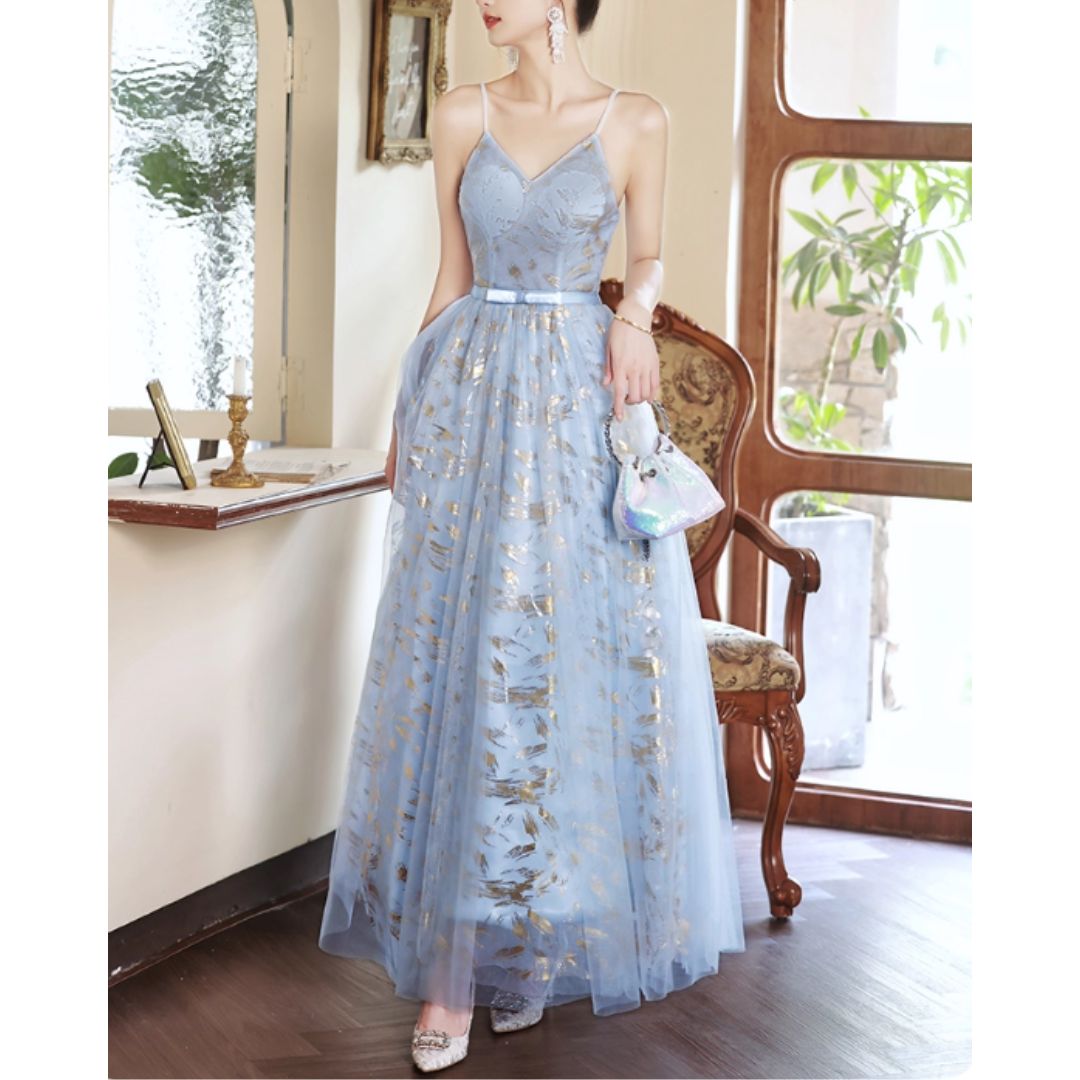 #7937 STRAPPY BLUE EVENING DRESS