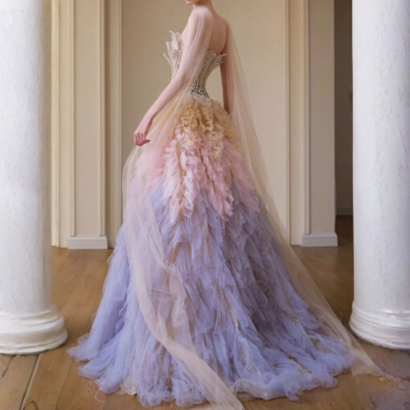 #7939 GRADIENT HEAVY EMBELLISHED EVENING DRESS
